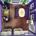 Die Villa besitzt nur vier Räume und ist für zwei Personen eingerichtet. Das Wohnzimmer dient gleichzeitig als Empfangssalon mit großen Sofas und zwei Sesseln, die zum Schachspielen einladen. Die Küche ist mit dem Standard-Küchenmodell ausgestattet und wurde in auffälligem Gelb gestaltet. Im Schlafzimmer dominiert das große Himmelbett, welches ebenfalls aus der Schlösserwelt stammt. Daneben das Standard-Badezimmer diesmal prunkvoll mit viel Gold und Flieder.
